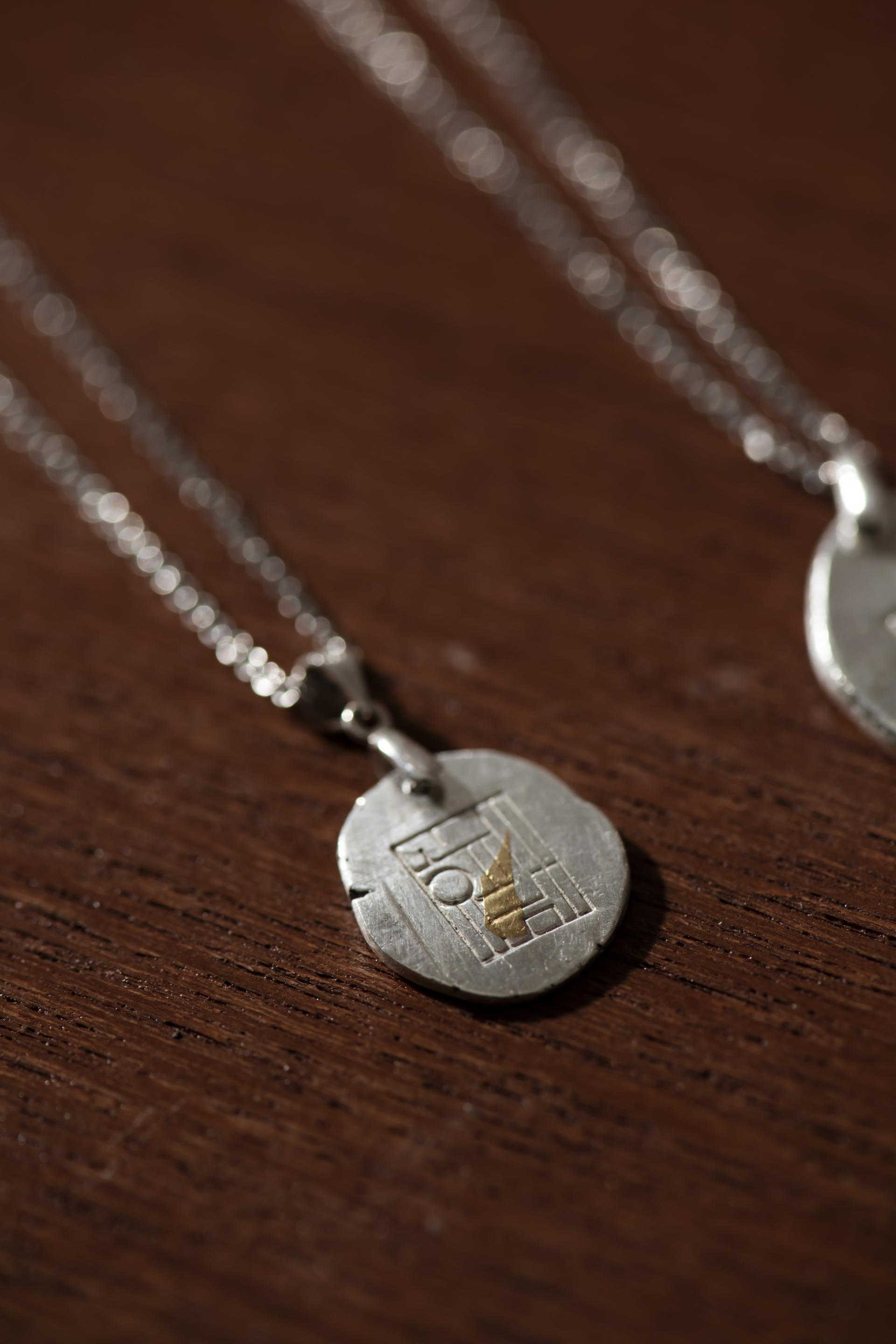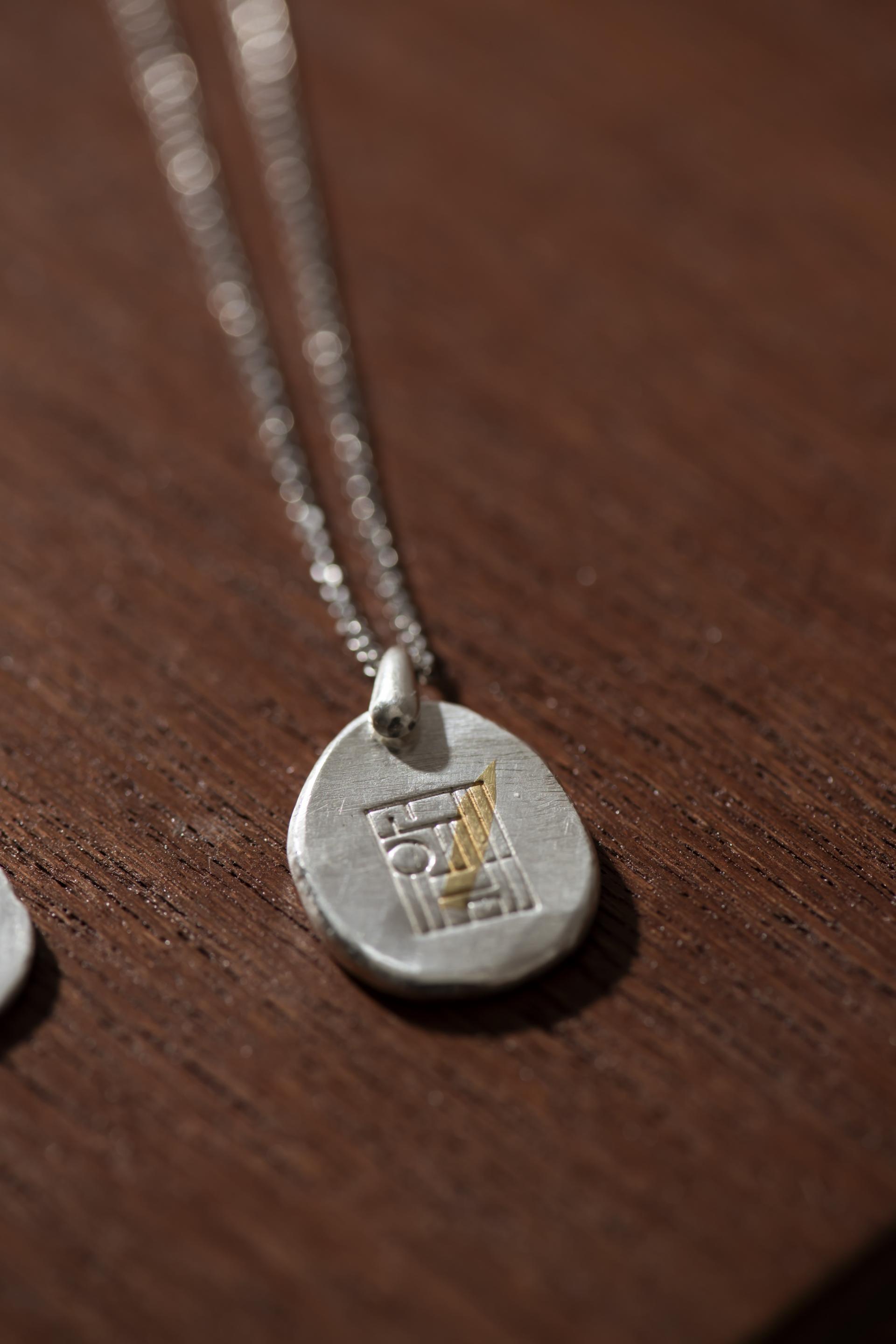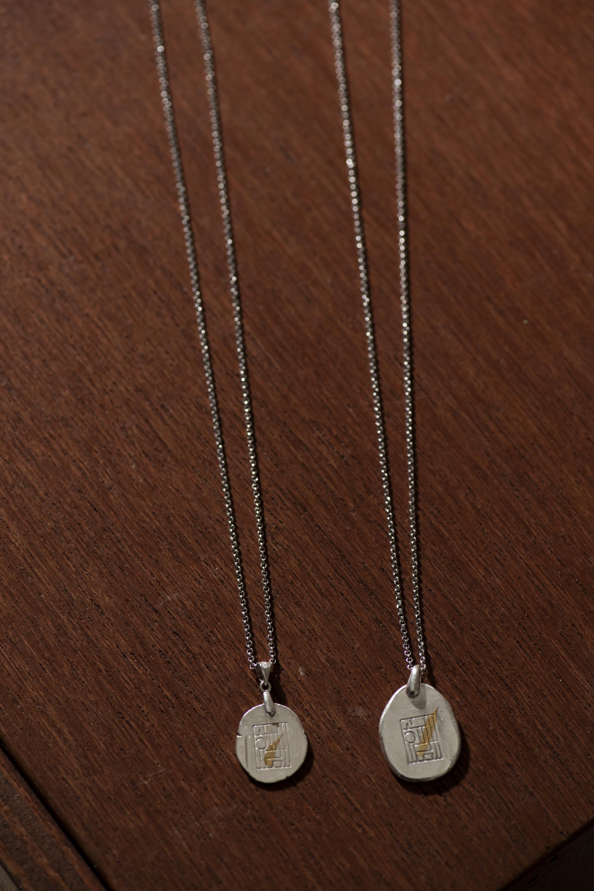 This pendant necklace was made by melting pure silver and hammering it. A keumboo highlight was added so that you can enjoy a small but luxurious detail.