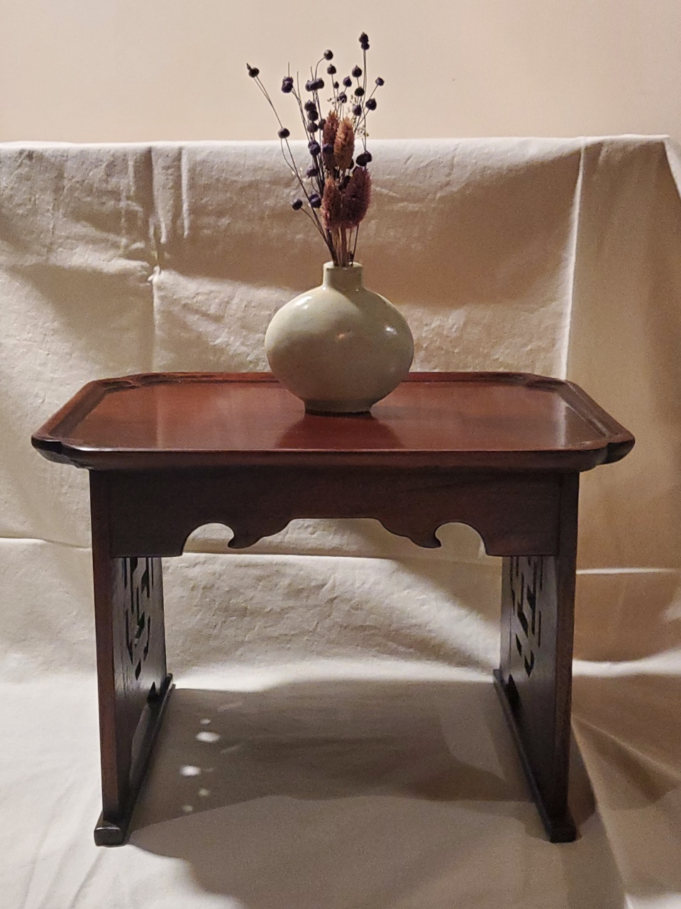 This is a reproduction of the Haejuban, a Korean traditional soban, which features splendid decorations.