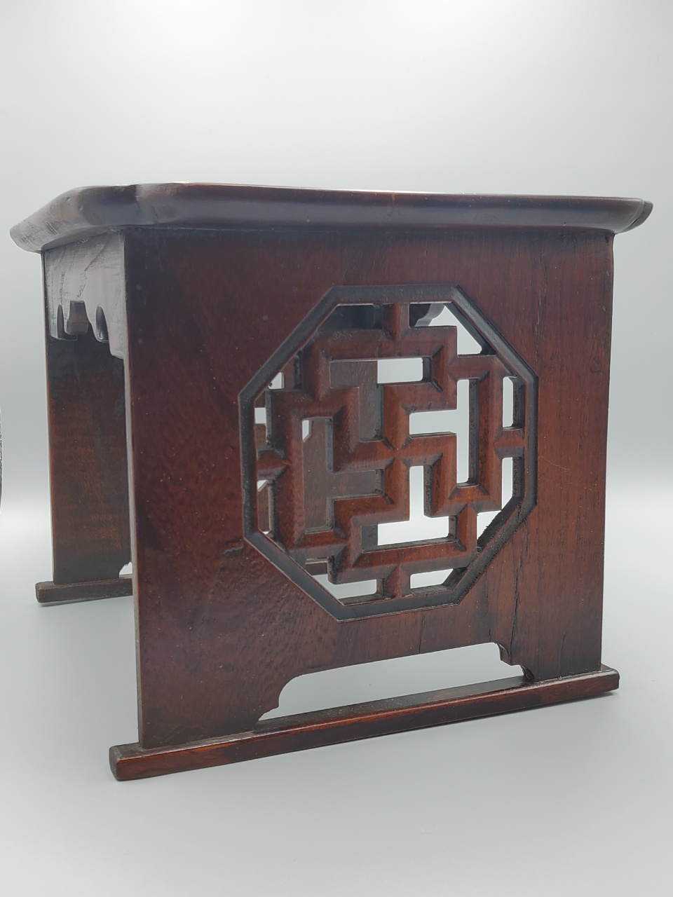 The Chinese character “man” (卍) can be seen in the engravings on the legs.