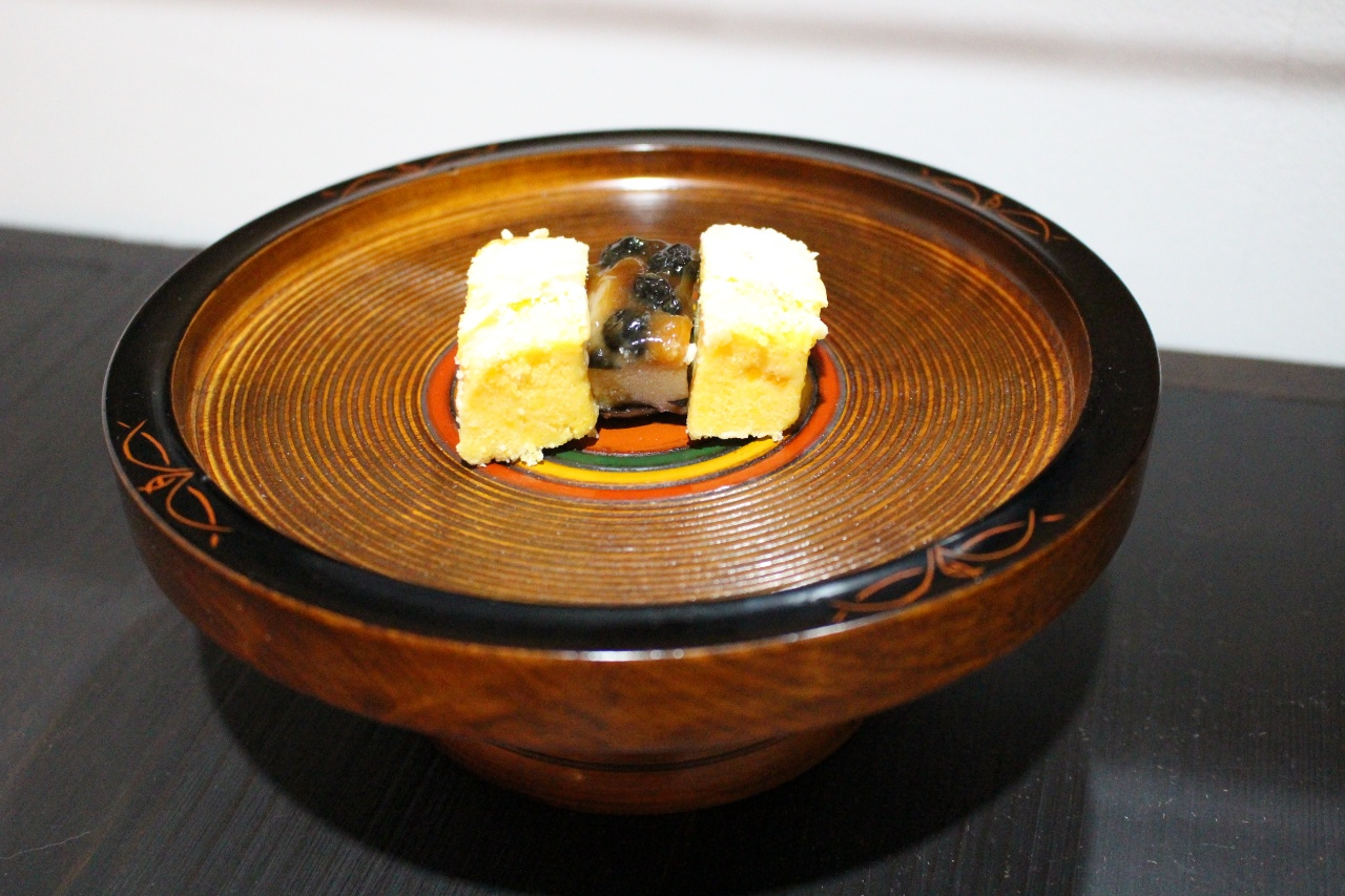 This is a Japanese vintage lacquered wooden compote used to hold tea confectionery.