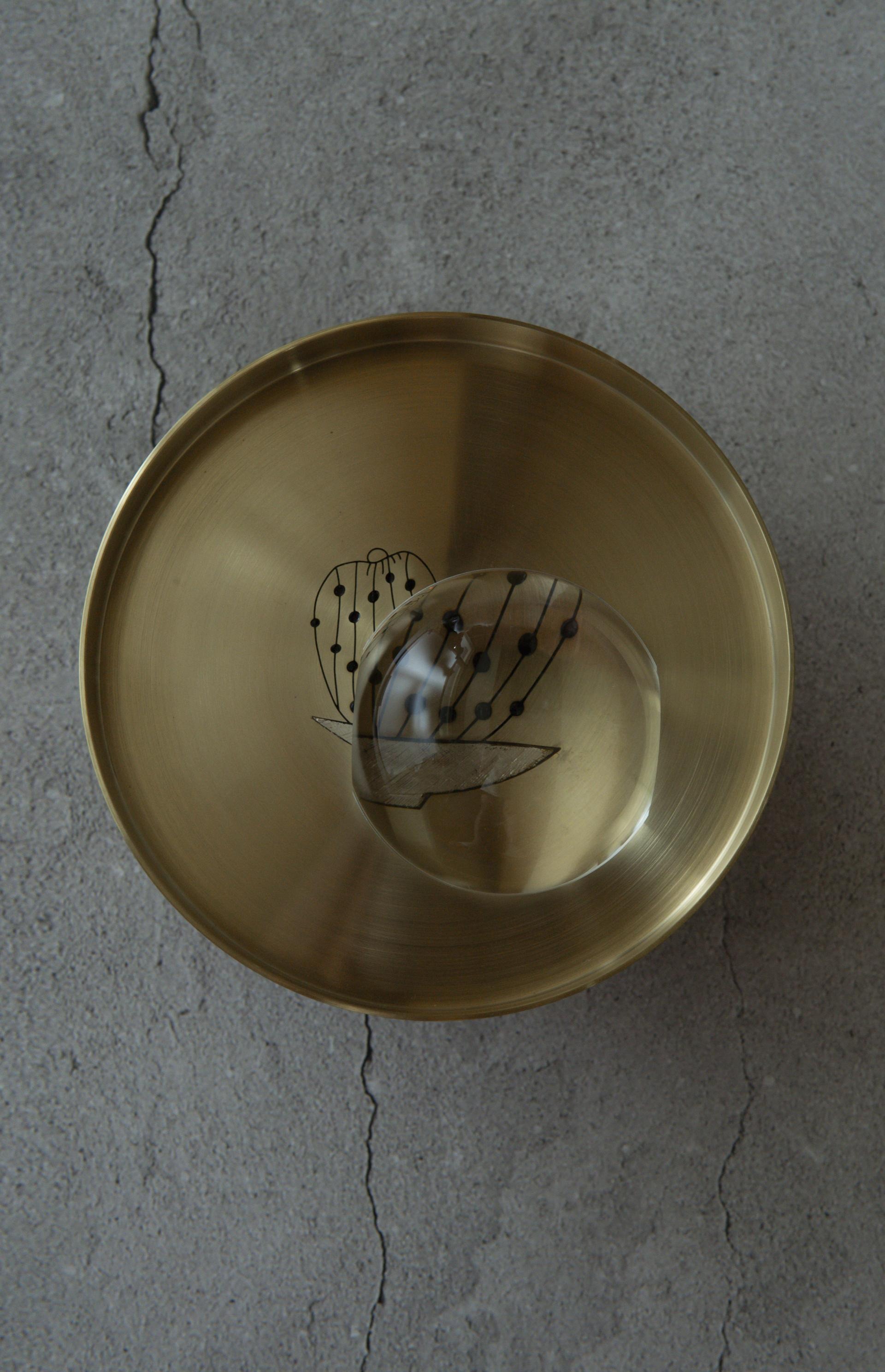 It is a brass high plate, decorated with traditional patterns carved and inlaid with silver. It is decorated by filing the surface using eunipsa(silver inlay) technique and applying silver foil on top. Unlike traditional silver inlay, which is typically applied to iron. This technique features brass and combines silver inlay with carving. It is very versatile and accessible for everyday use.
