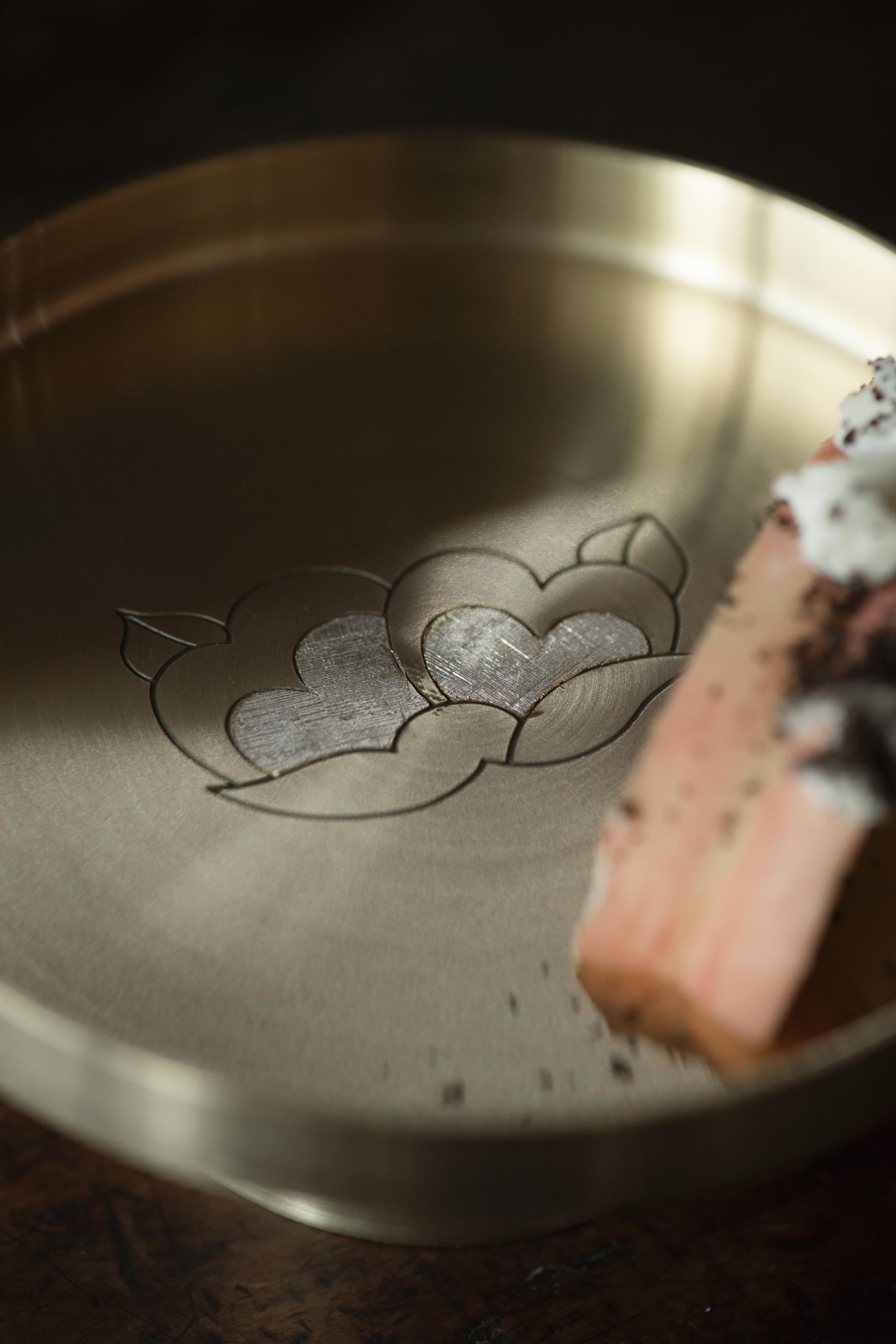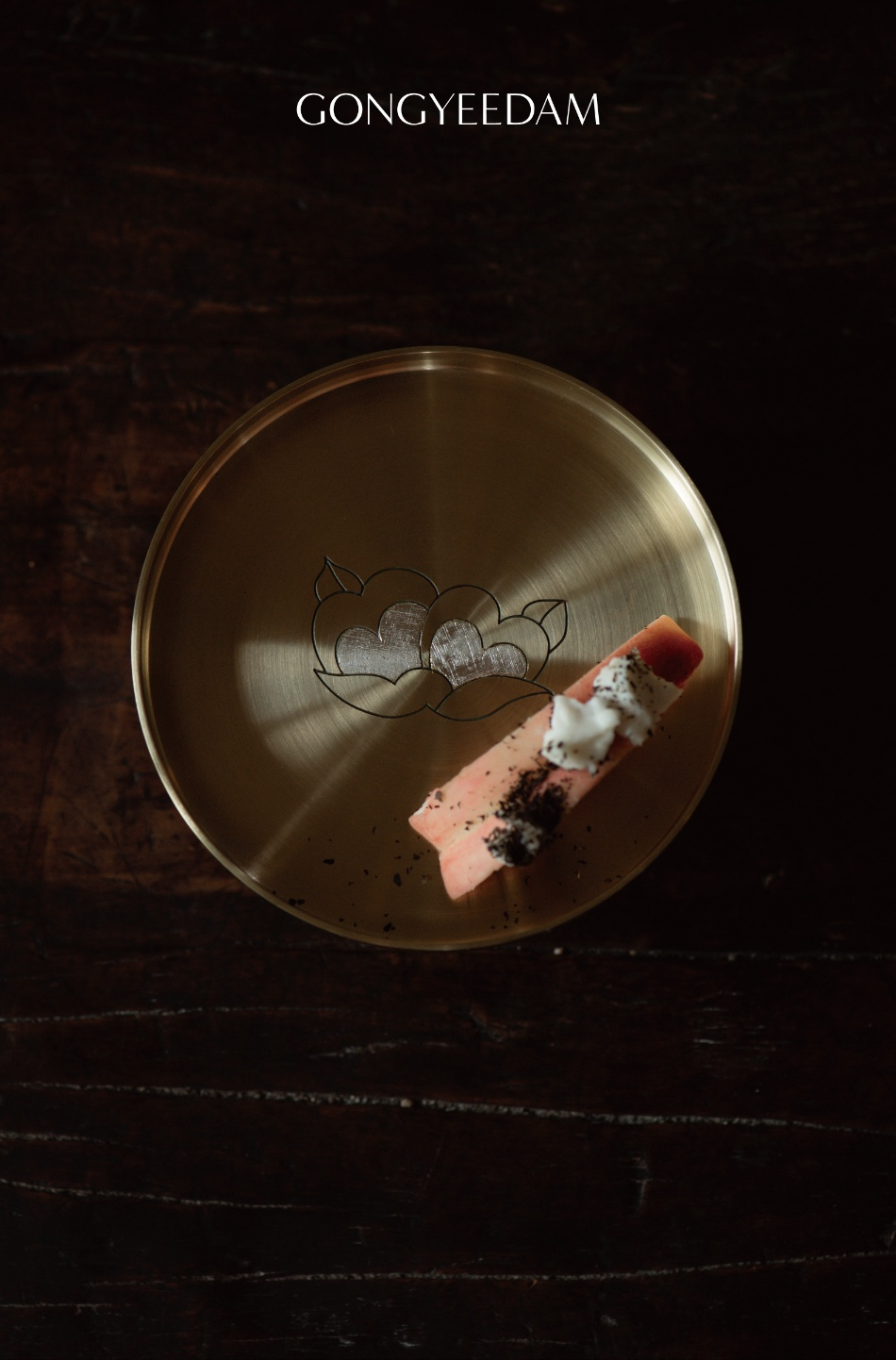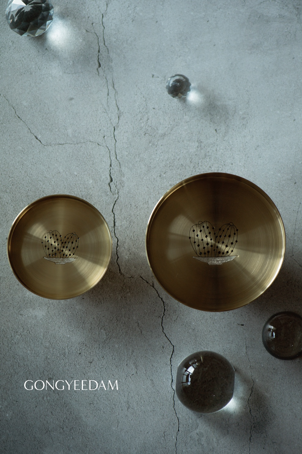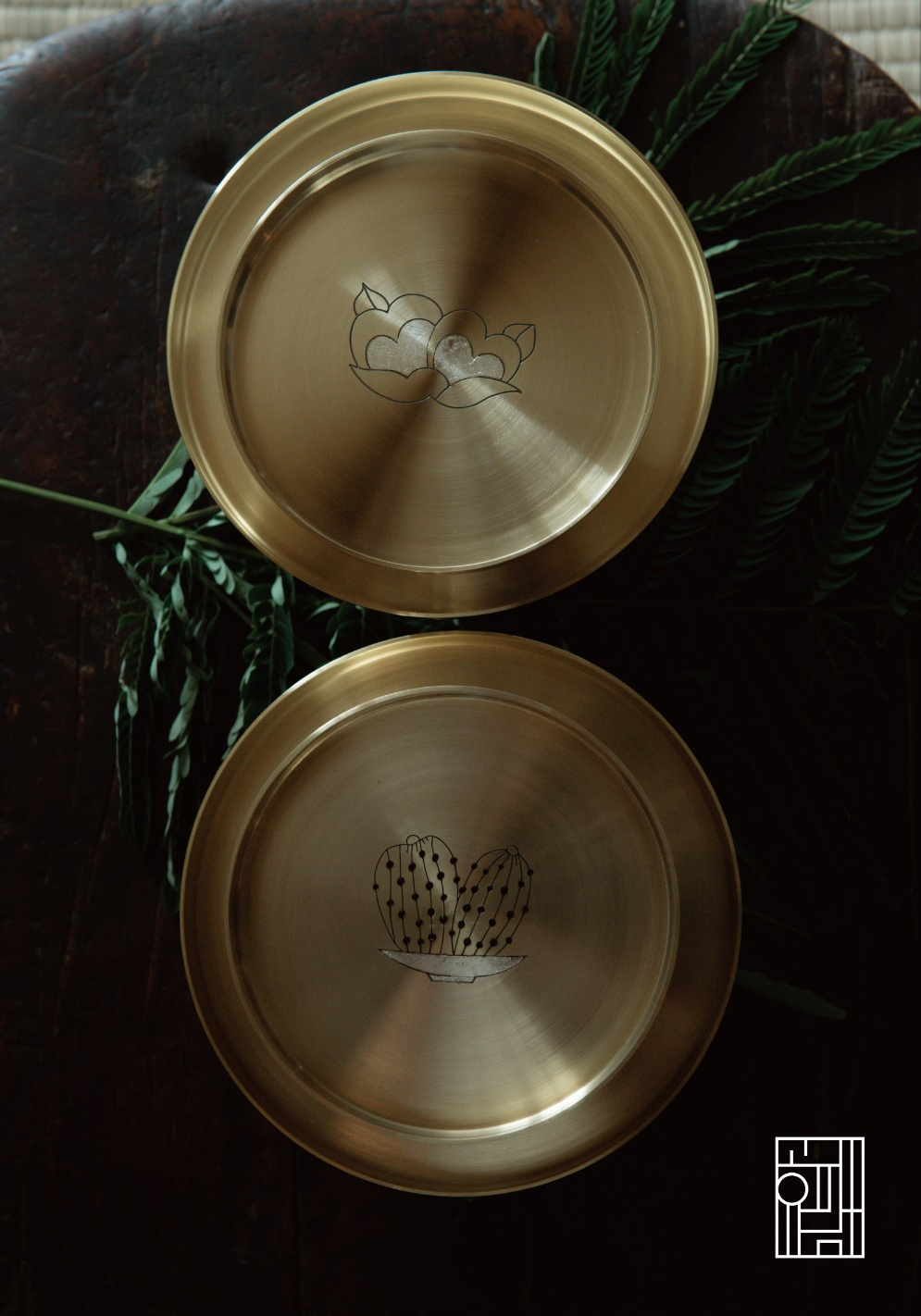 It is a brass high plate, decorated with traditional patterns carved and inlaid with silver. It is decorated by filing the surface using eunipsa(silver inlay) technique and applying silver foil on top. Unlike traditional silver inlay, which is typically applied to iron. This technique features brass and combines silver inlay with carving. It is very versatile and accessible for everyday use.