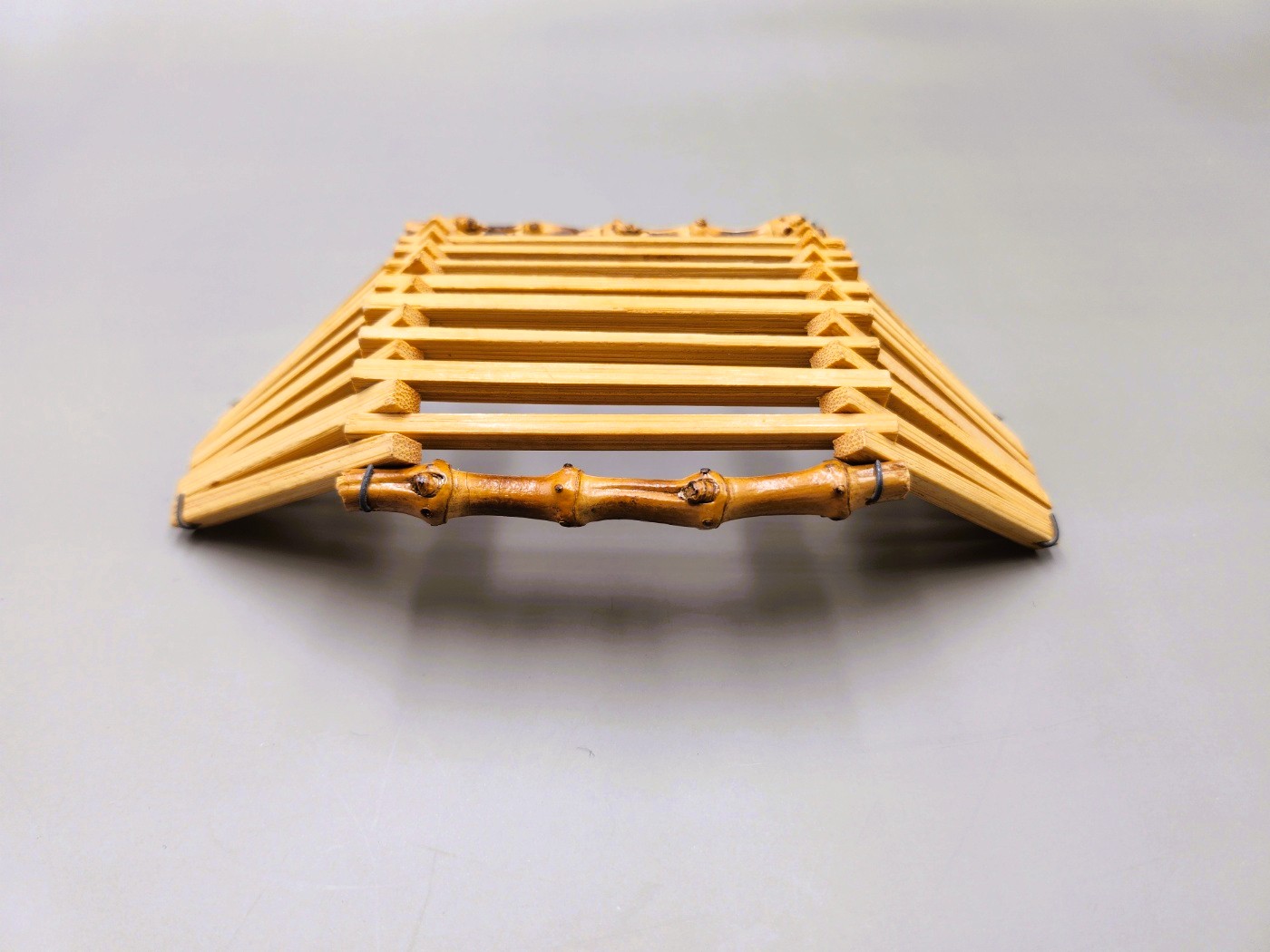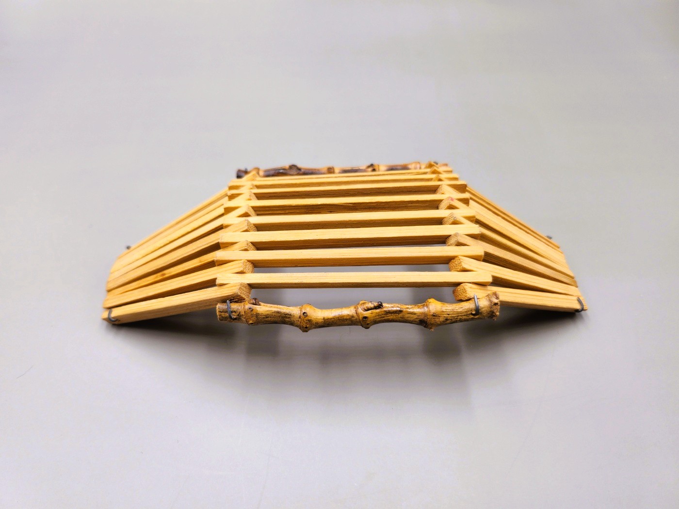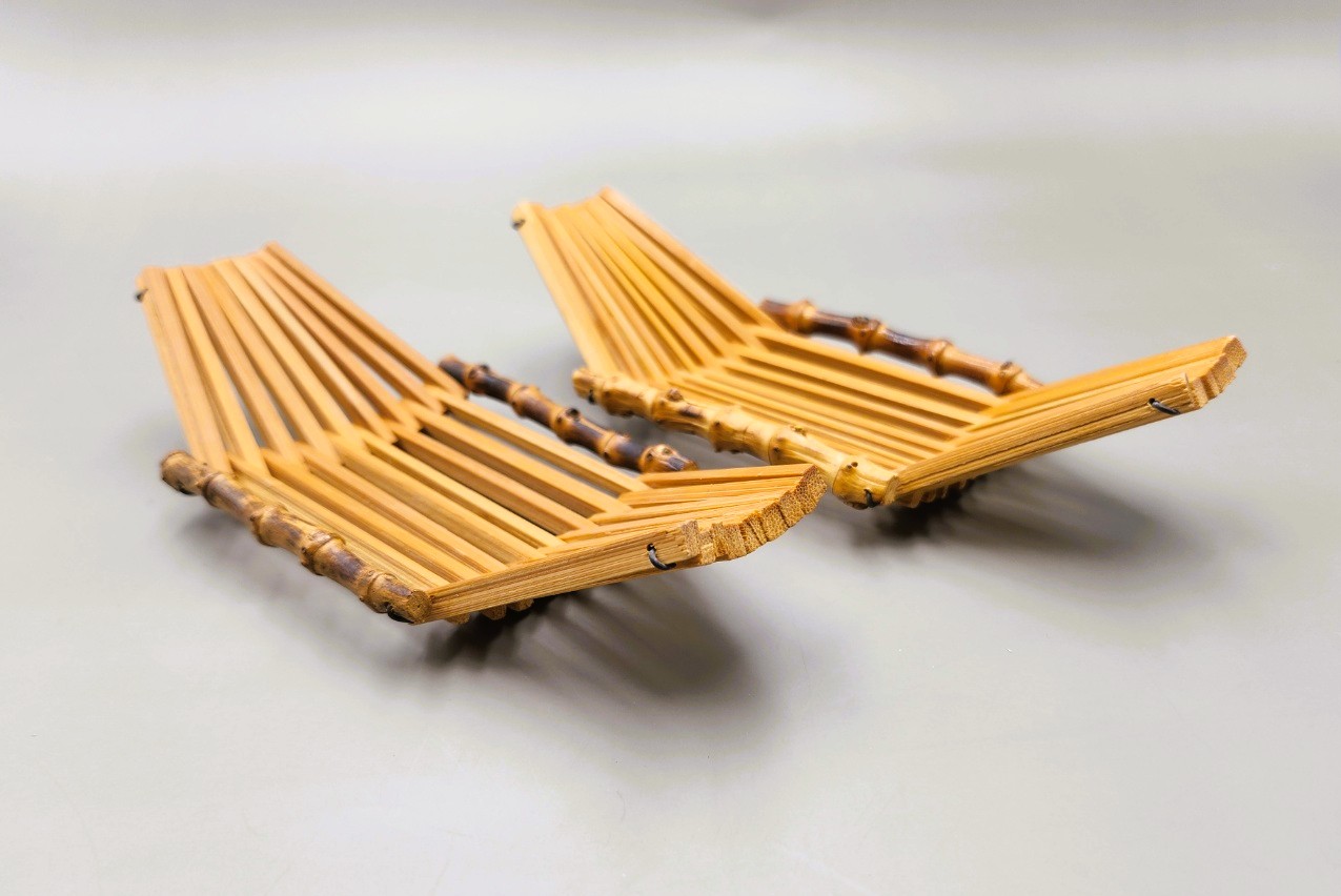 Its distinctive feature is the bamboo framing on both sides, which shapes and supports the base.