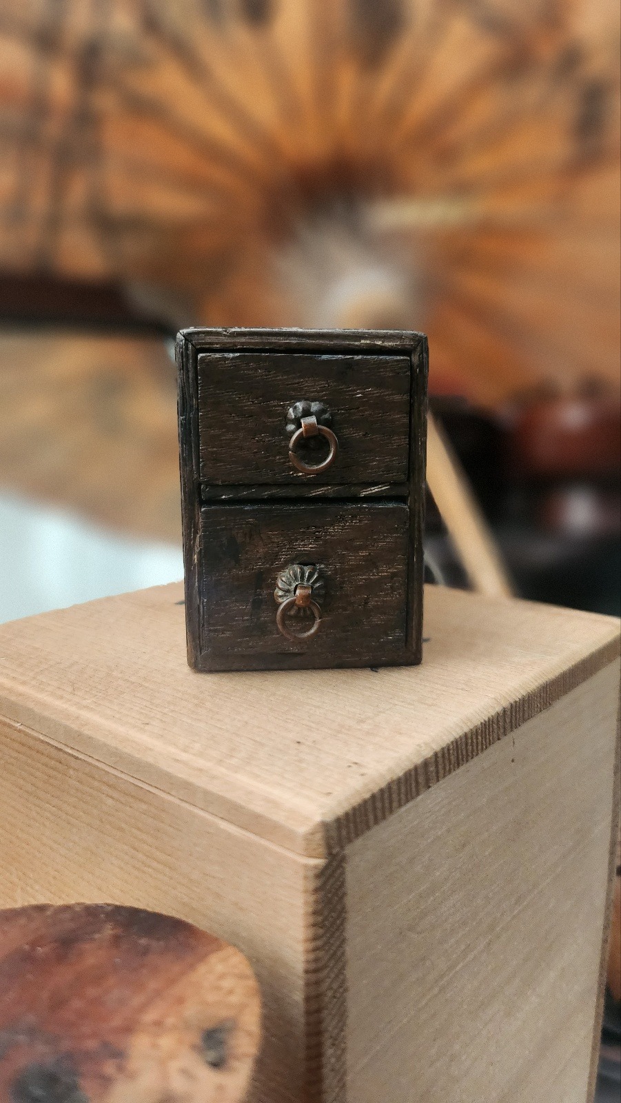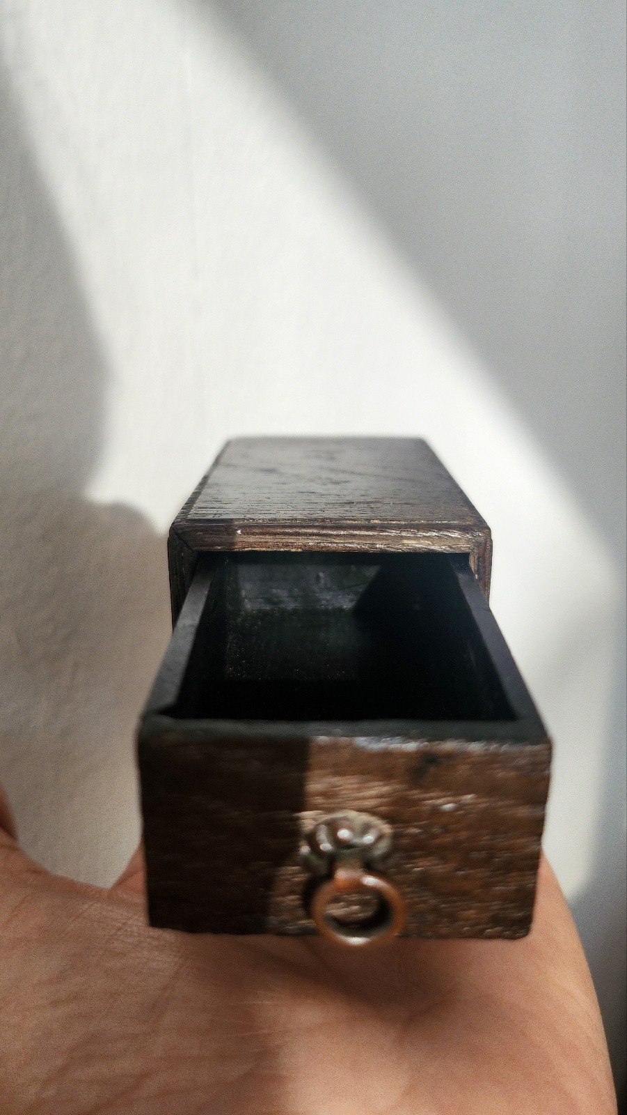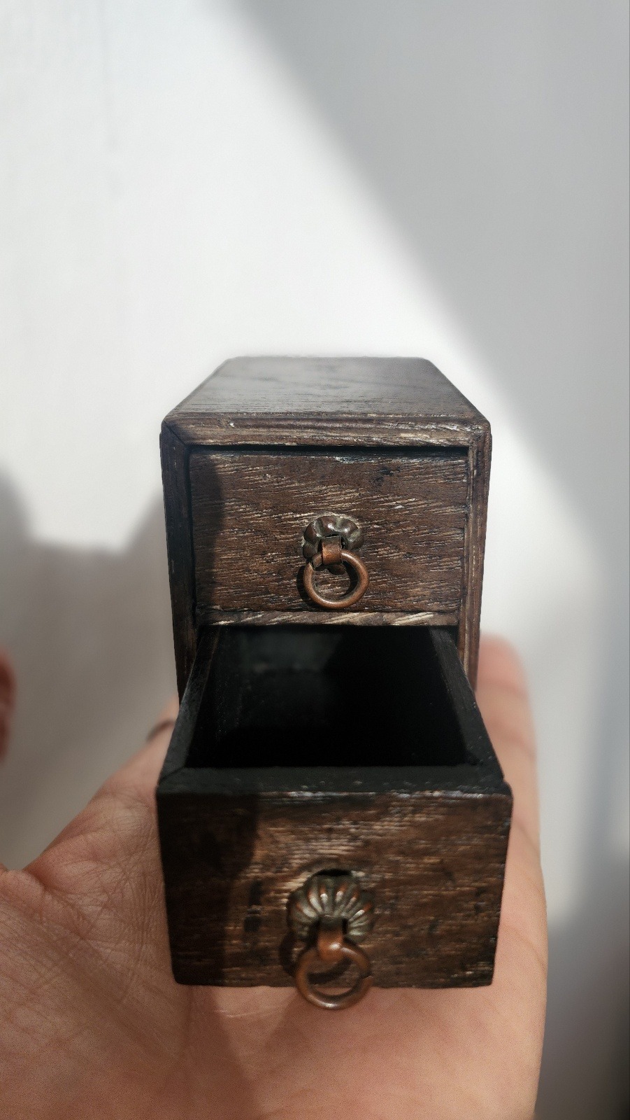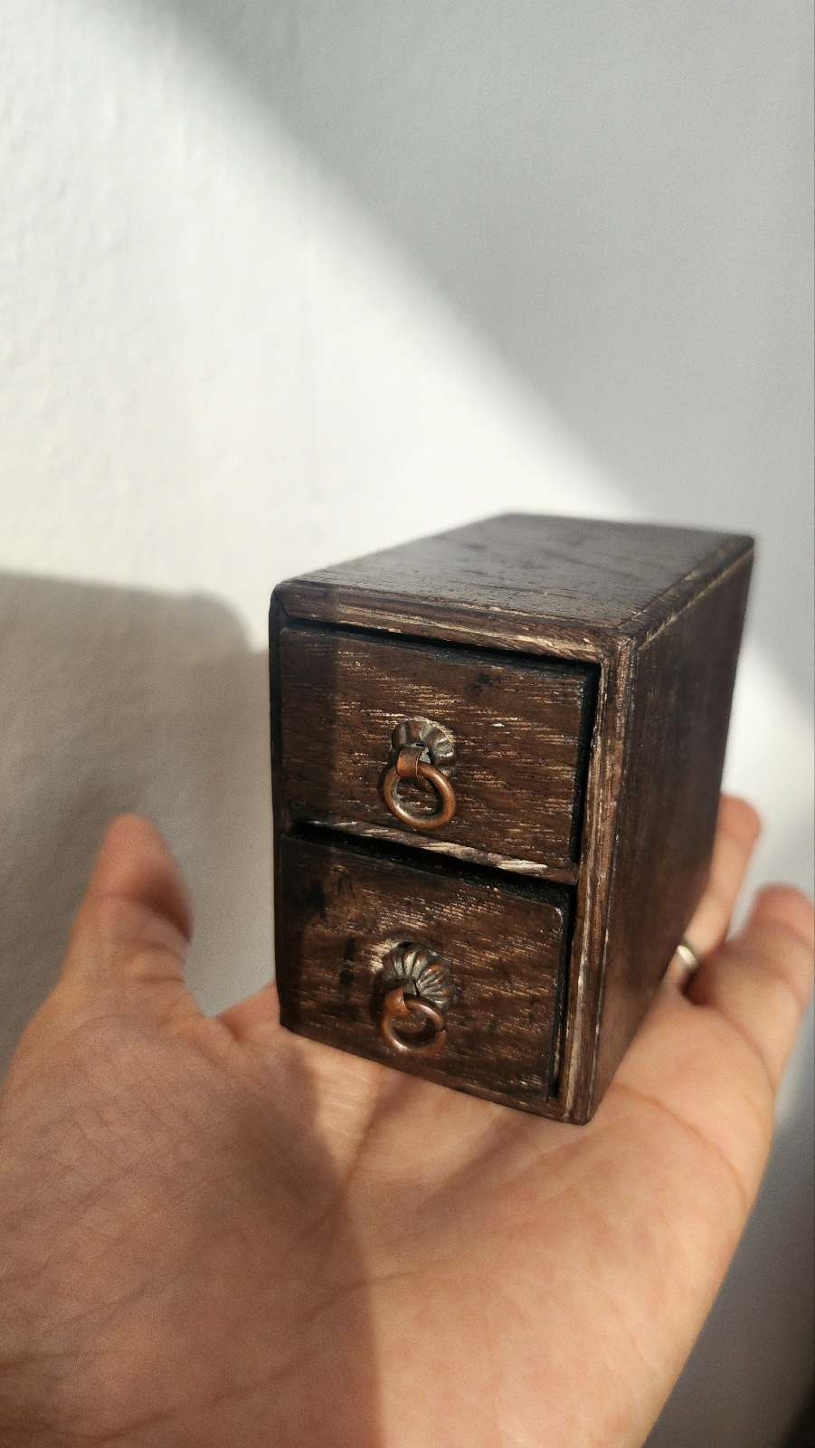 A small paulownia wood drawer box, perfectly sized to rest in the palm of your hand.