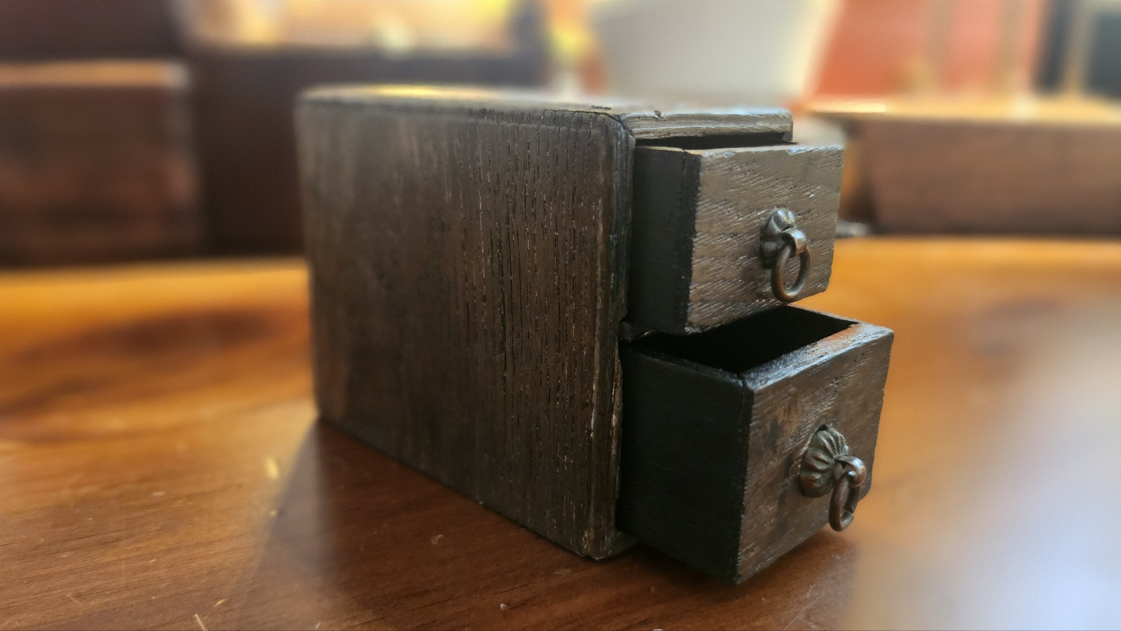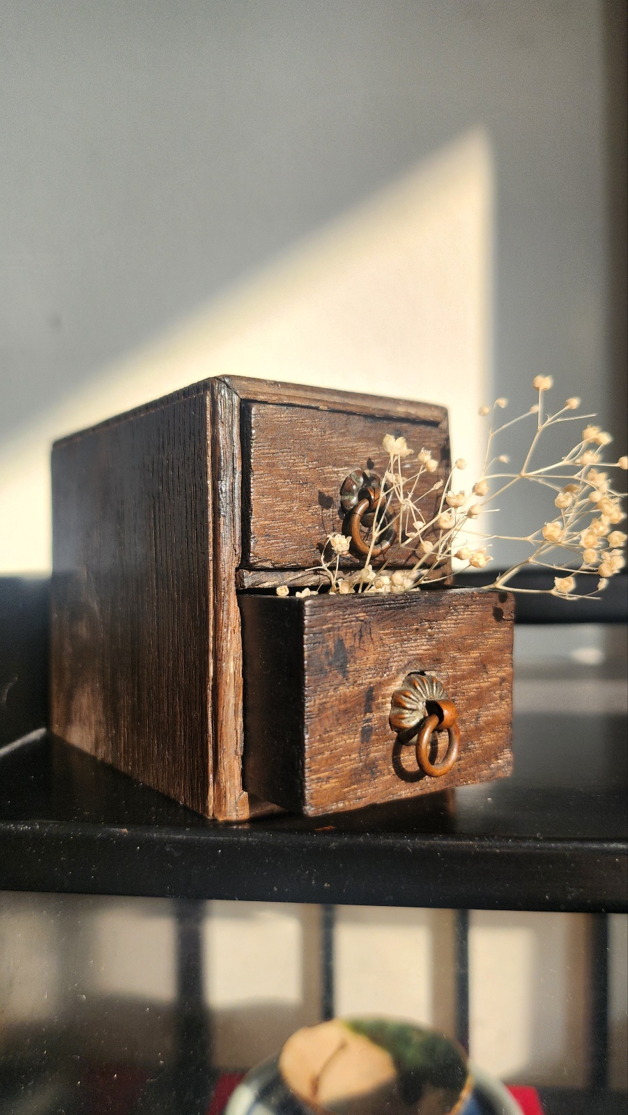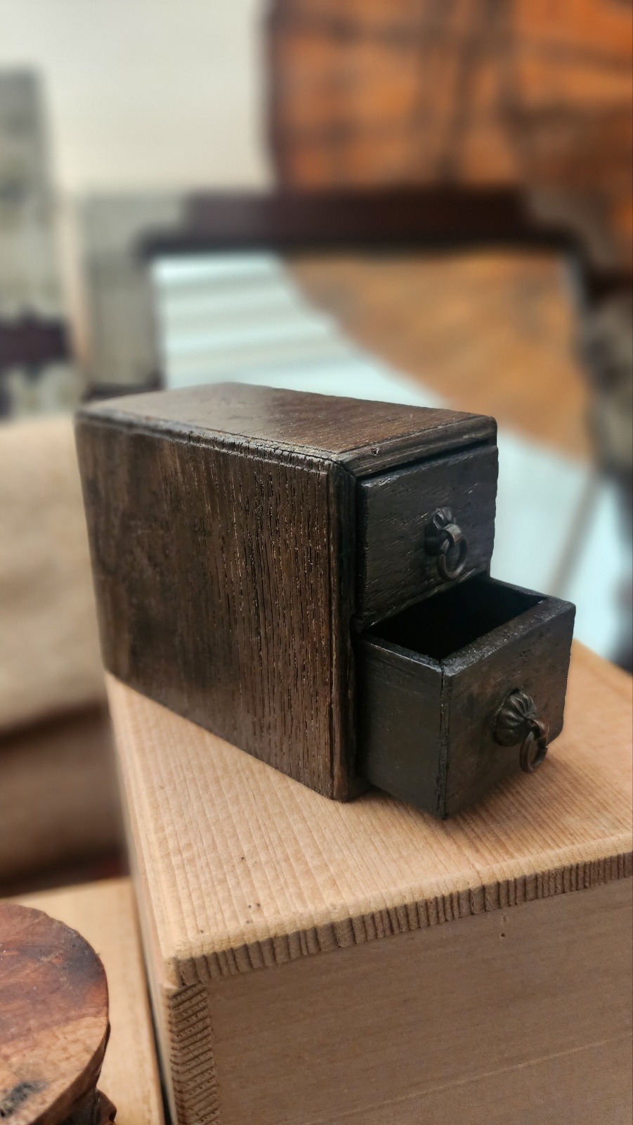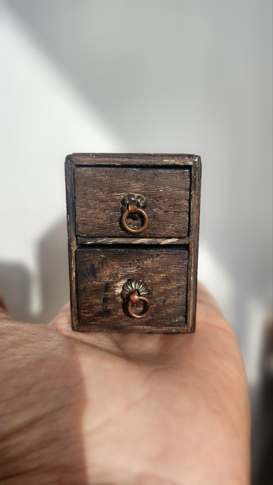 A small paulownia wood drawer box, perfectly sized to rest in the palm of your hand.