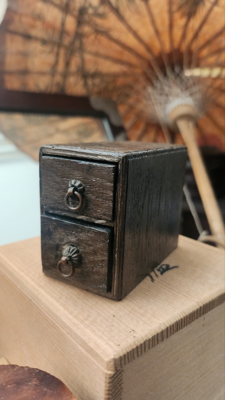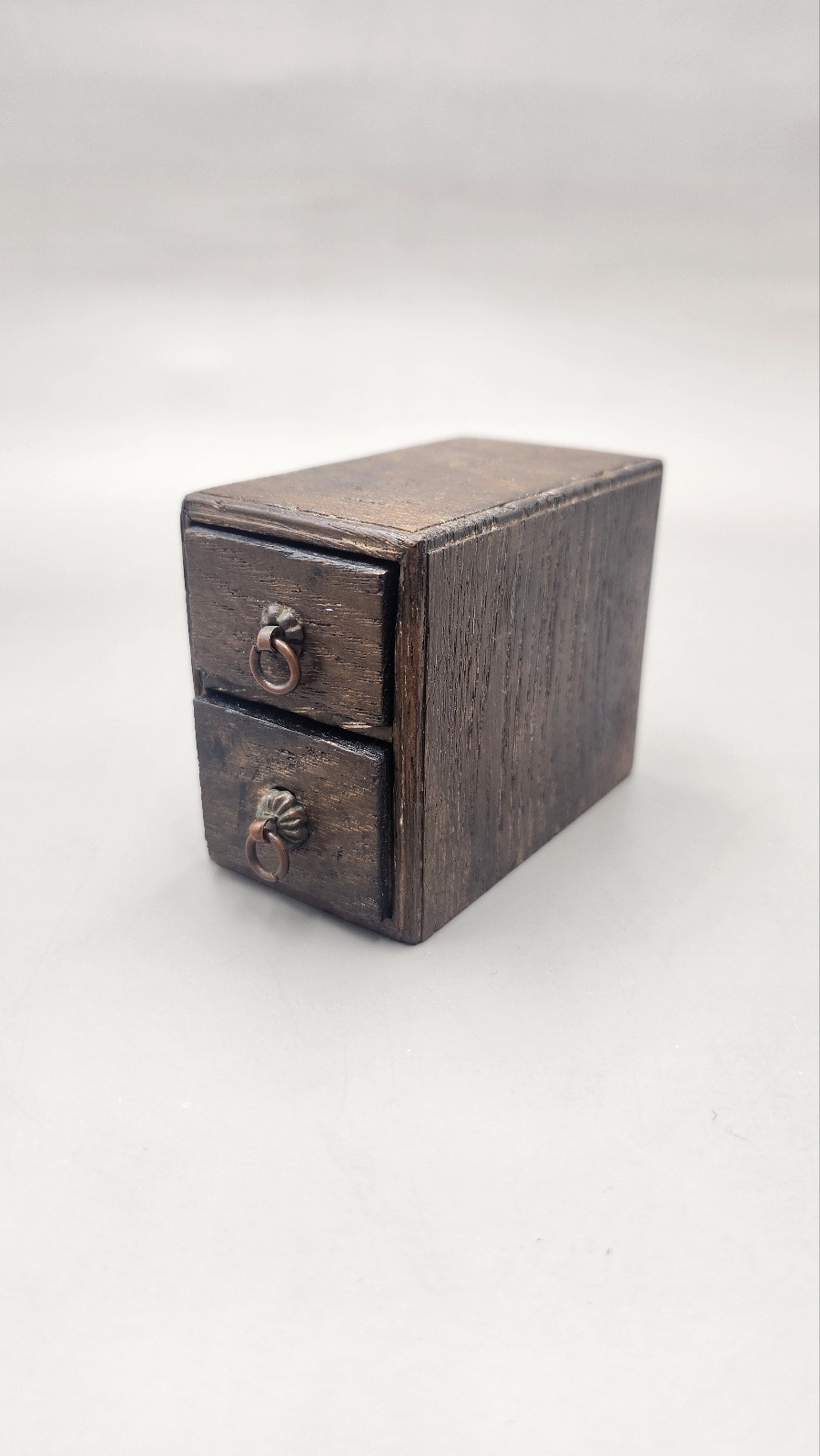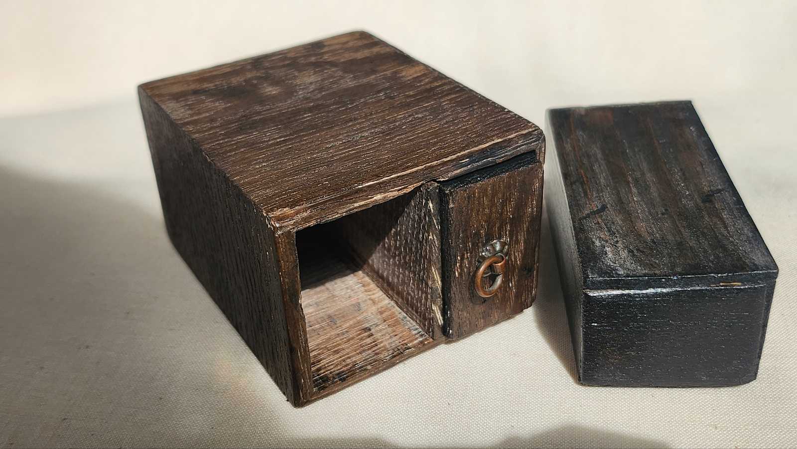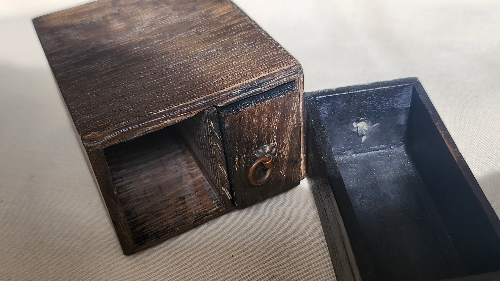 A small paulownia wood drawer box, perfectly sized to rest in the palm of your hand.